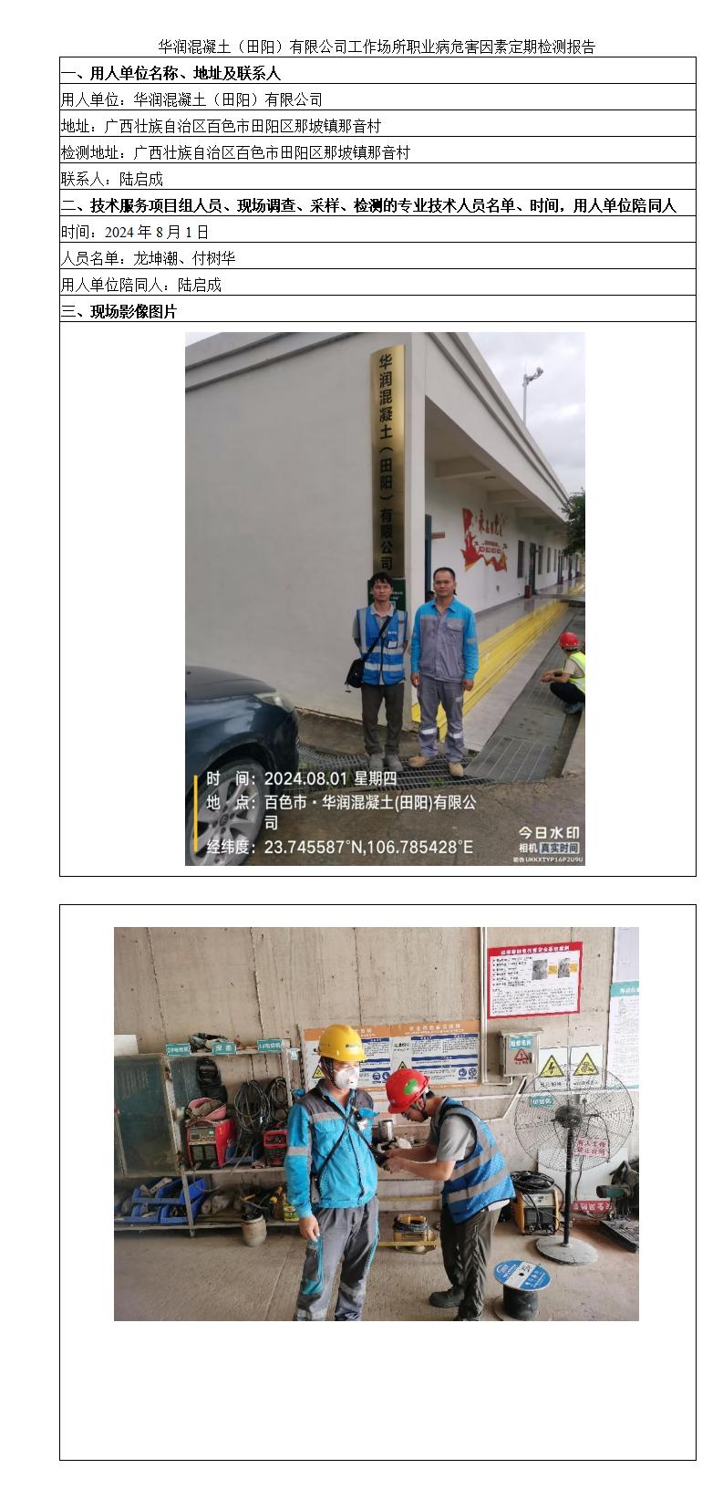 華潤混凝土(田陽)有限公司工作場所職業(yè)病危害因素定期檢測報告
