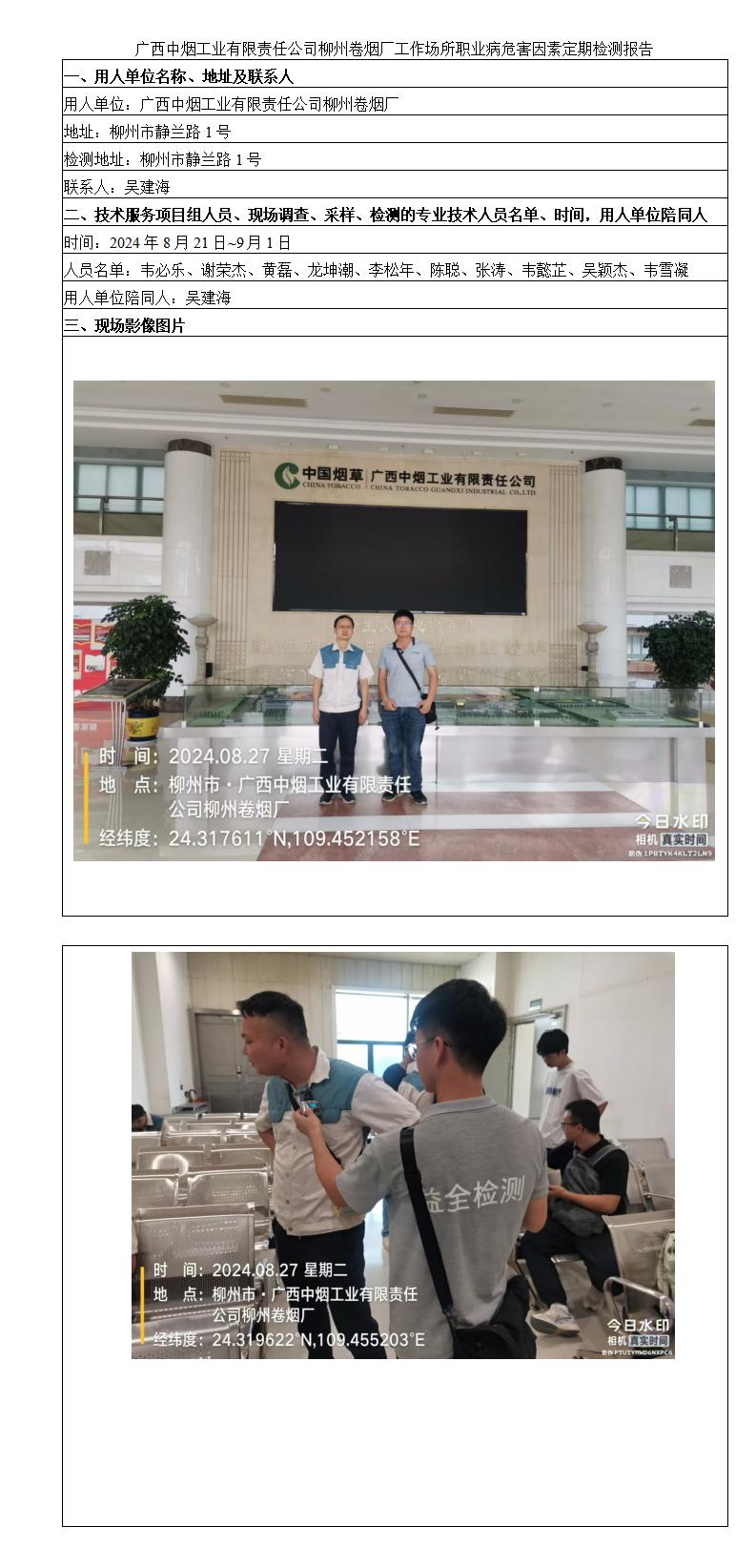 廣西中煙工業(yè)有限責(zé)任公司柳州卷煙廠工作場(chǎng)所職業(yè)病危害因素定期檢測(cè)報(bào)告