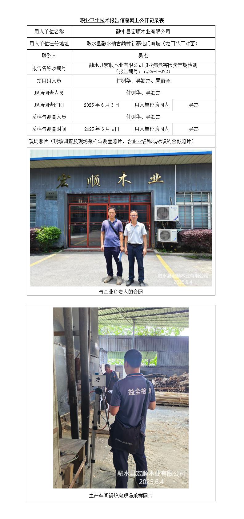 融水縣宏順木業(yè)有限公司職業(yè)病危害因素定期檢測(cè)報(bào)告