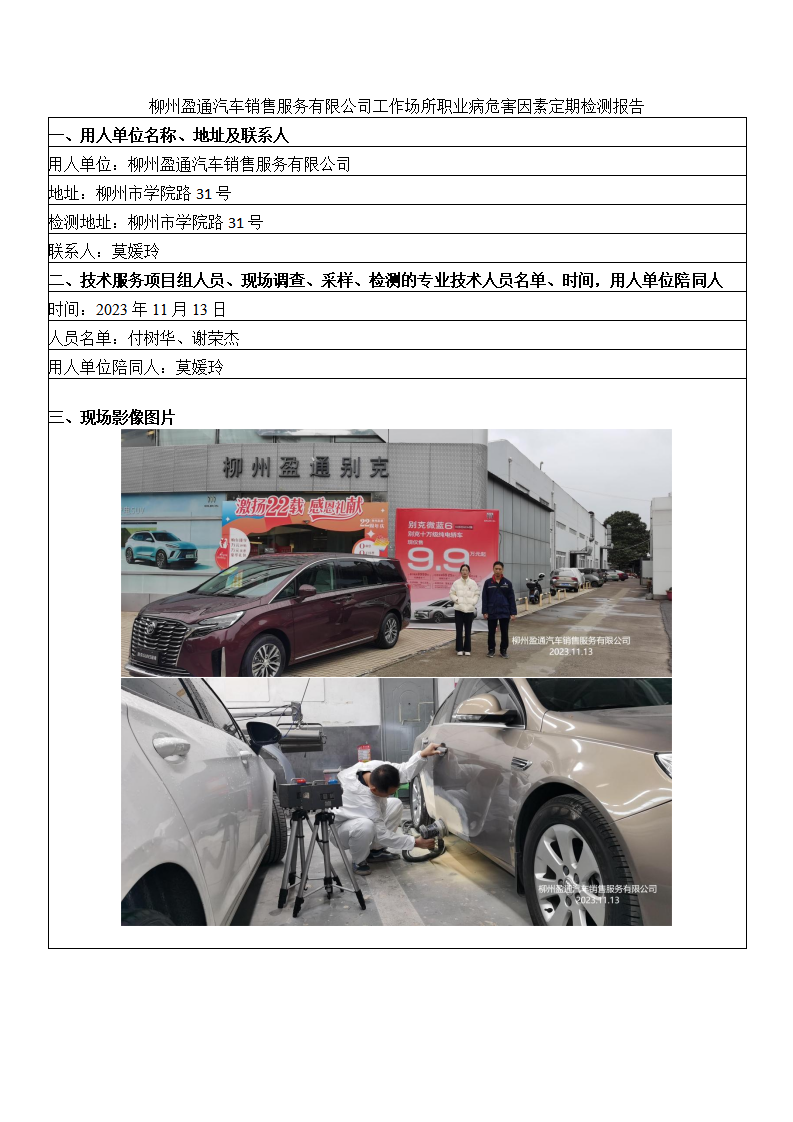 柳州盈通汽車(chē)銷(xiāo)售服務(wù)有限公司工作場(chǎng)所職業(yè)病危害因素定期檢測(cè)報(bào)告