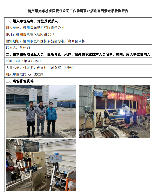 柳州曙光車橋有限責任公司工作場所職業(yè)病危害因素定期檢測報告