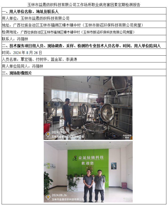 玉林市益晟紡織科技有限公司工作場所職業(yè)病危害因素定期檢測報告