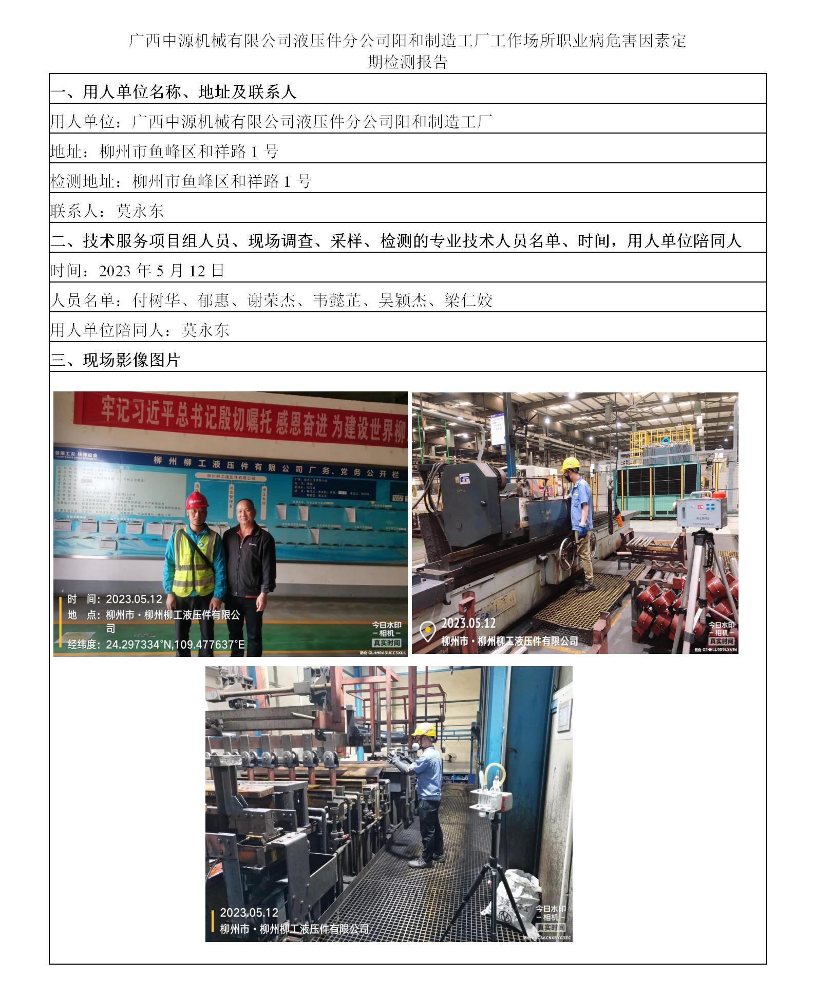 廣西中源機(jī)械有限公司液壓件分公司陽和制造工廠工作場所職業(yè)病危害因素定期檢測報(bào)告