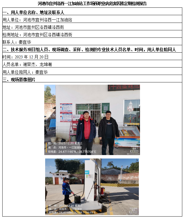 河池市宜州洛西一江加油站工作場所職業(yè)病危害因素定期檢測報(bào)告