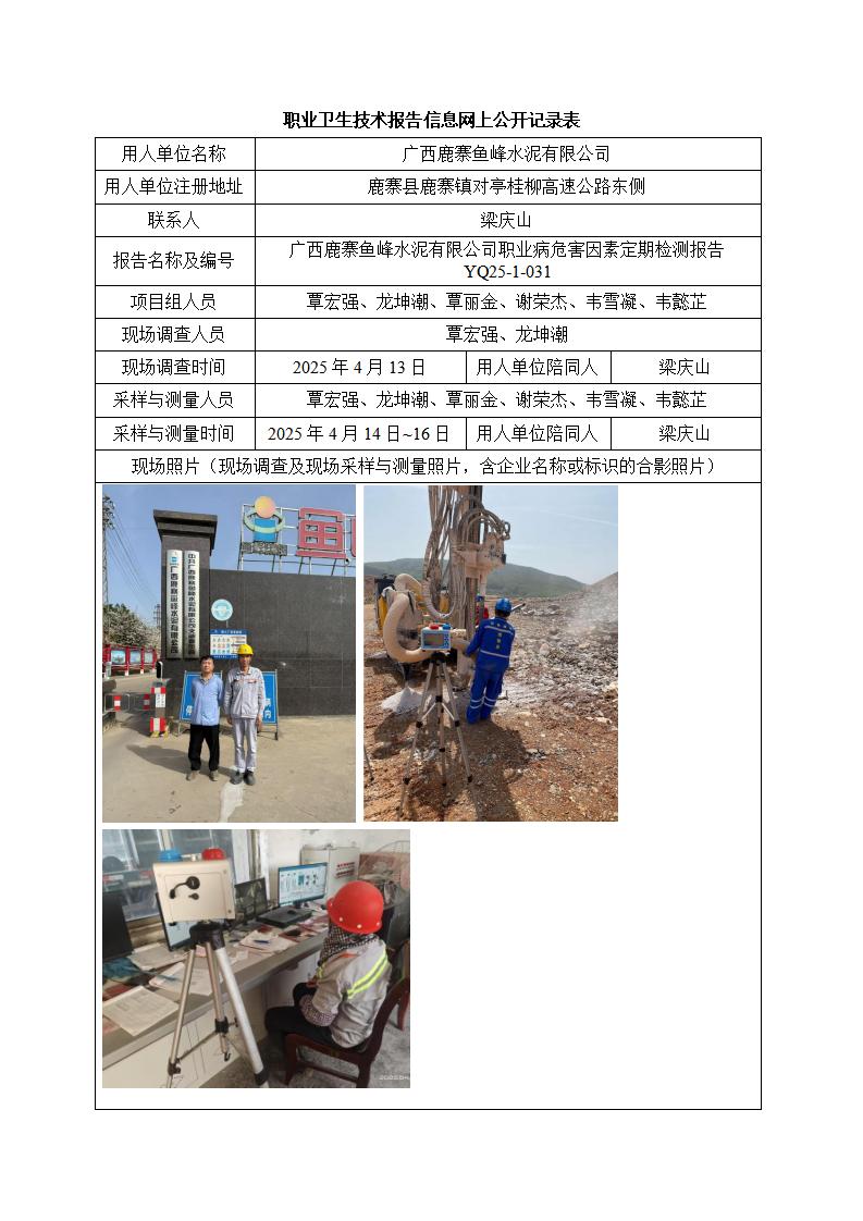 廣西鹿寨魚峰水泥有限公司職業(yè)病危害因素定期檢測報告