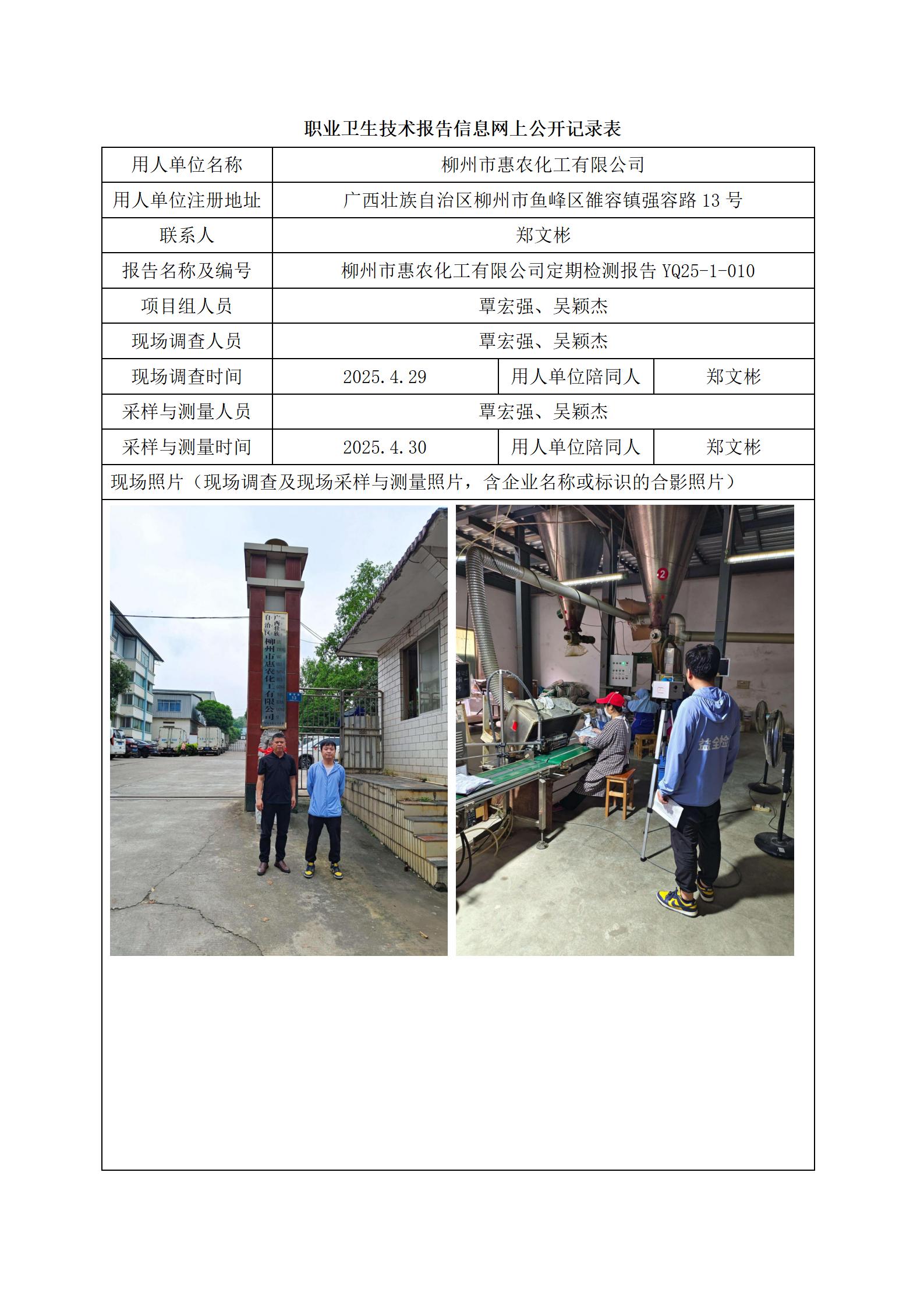 柳州市惠農(nóng)化工有限公司定期檢測報告