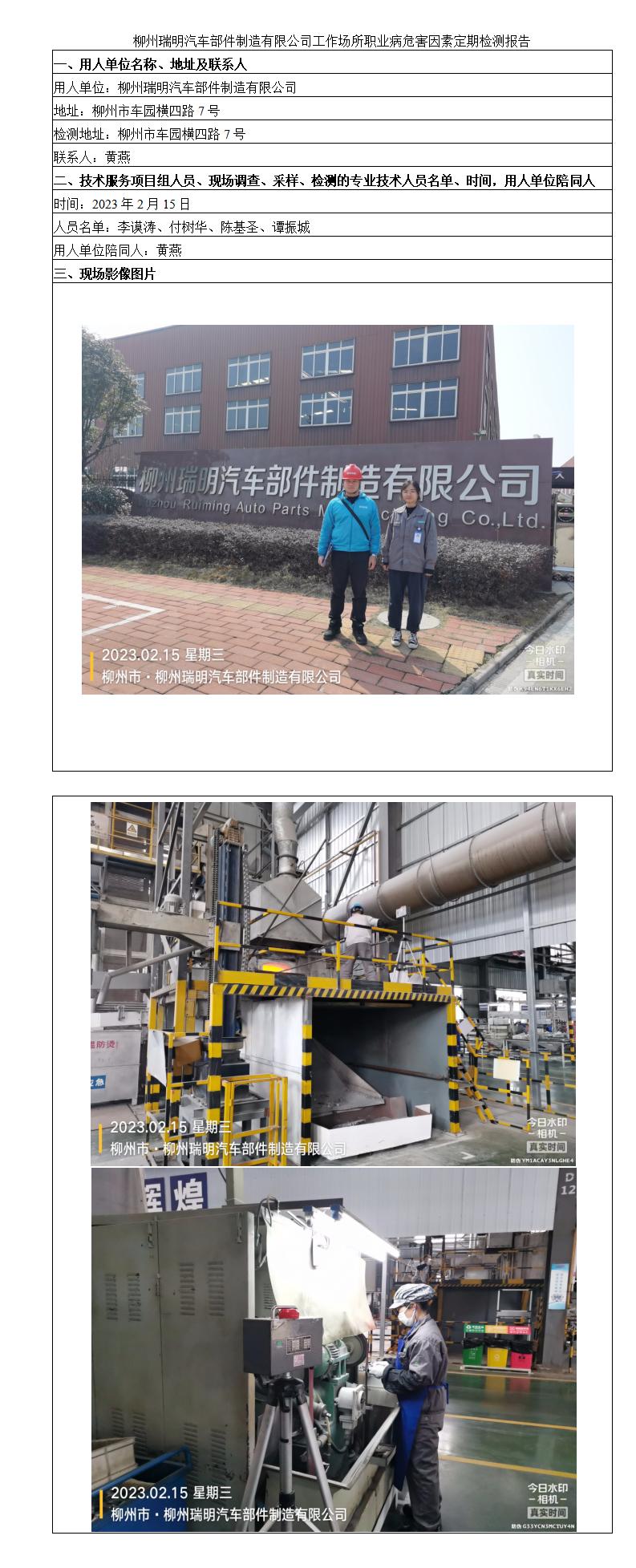 柳州瑞明汽車部件制造有限公司工作場所職業(yè)病危害因素定期檢測報告