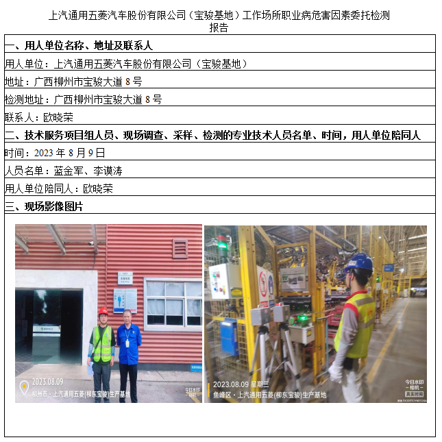 上汽通用五菱汽車股份有限公司(寶駿基地)工作場所職業(yè)病危害因素委托檢測報告