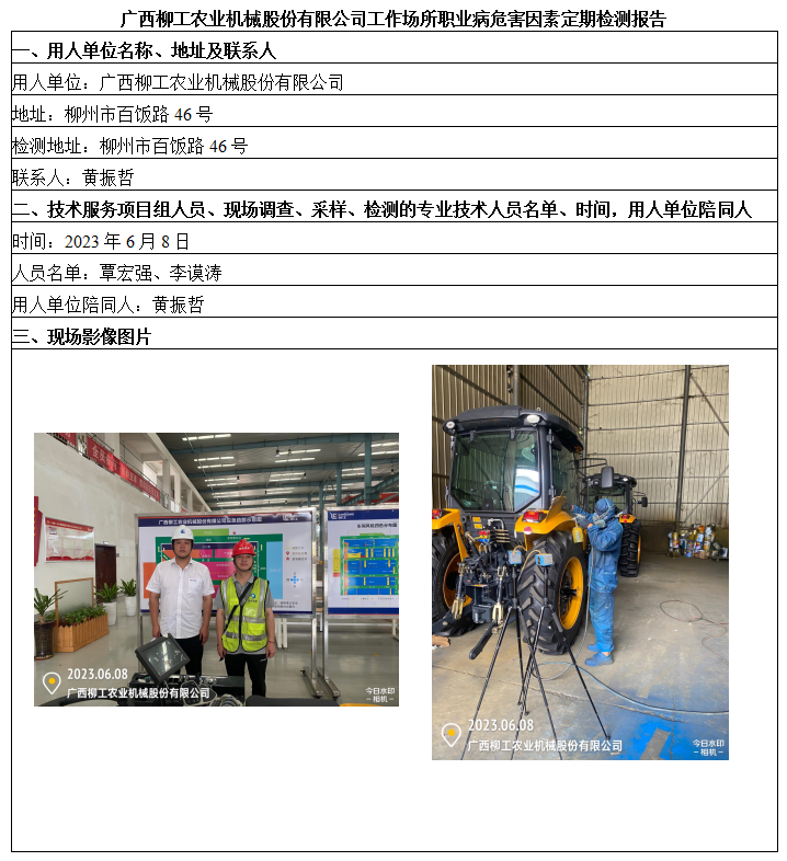 廣西柳工農(nóng)業(yè)機(jī)械股份有限公司工作場(chǎng)所職業(yè)病危害因素定期檢測(cè)報(bào)告