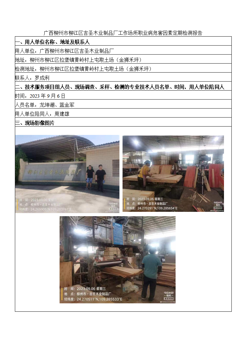 廣西柳州市柳江區(qū)吉圣木業(yè)制品廠工作場(chǎng)所職業(yè)病危害因素定期檢測(cè)報(bào)告