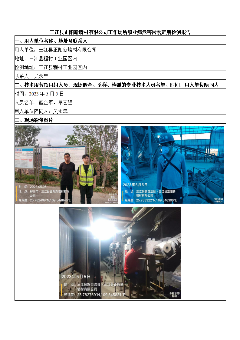 三江縣正陽(yáng)新墻材有限公司工作場(chǎng)所職業(yè)病危害因素定期檢測(cè)報(bào)告