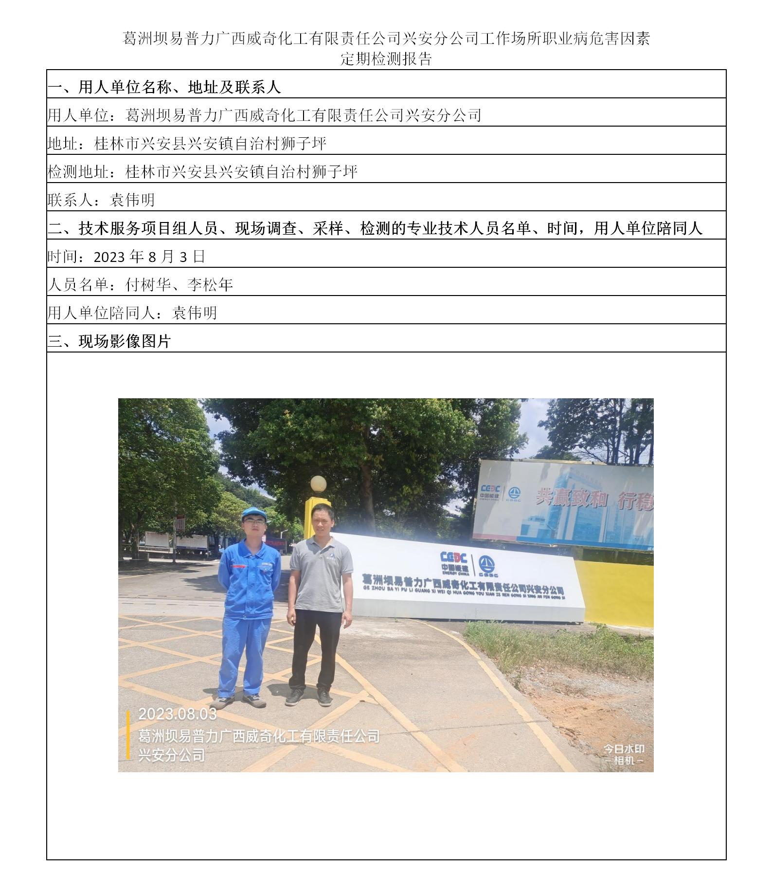 葛洲壩易普力廣西威奇化工有限責(zé)任公司興安分公司工作場(chǎng)所職業(yè)病危害因素定期檢測(cè)報(bào)告