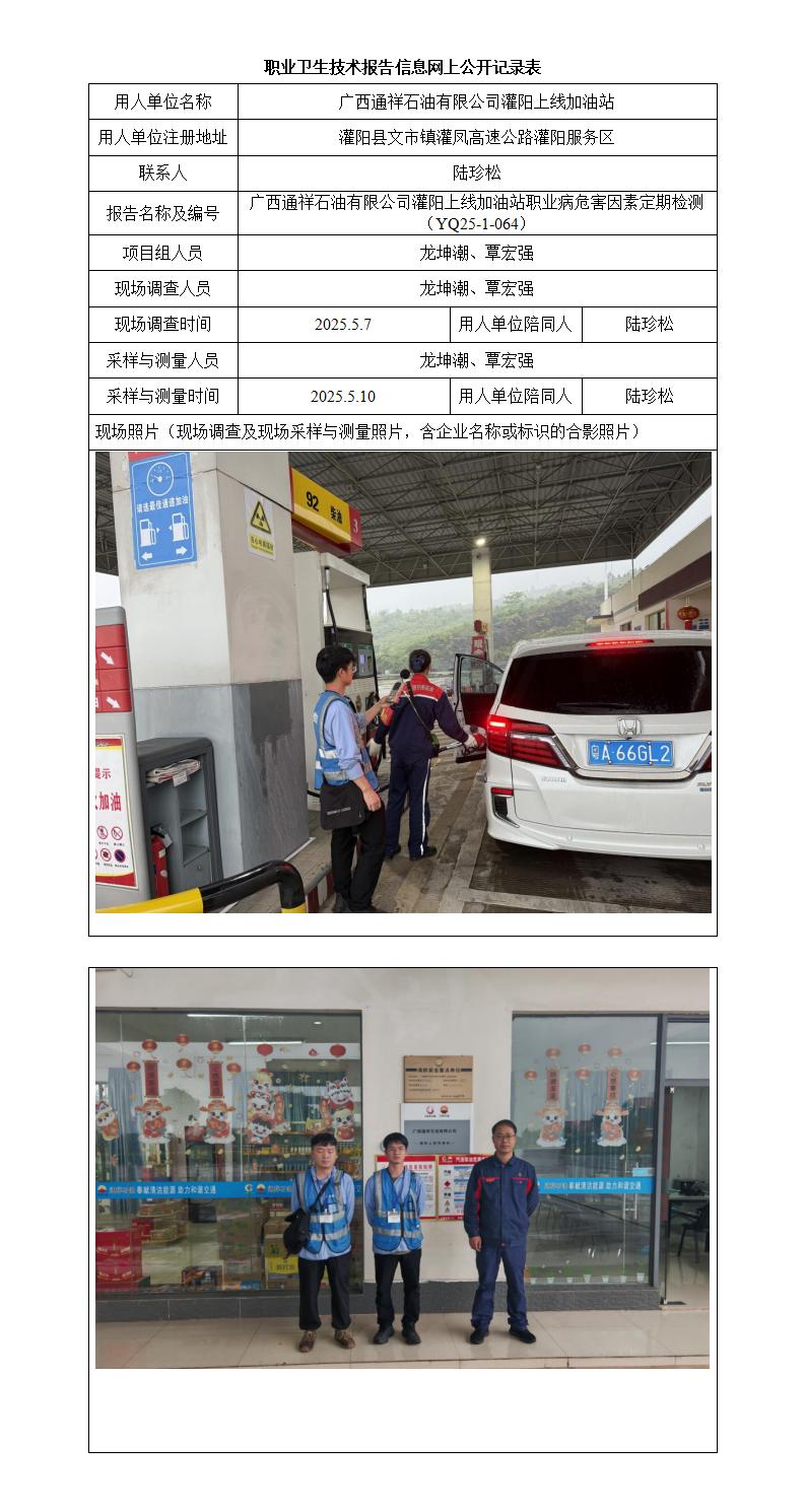 廣西通祥石油有限公司灌陽上線加油站職業(yè)病危害因素定期檢測