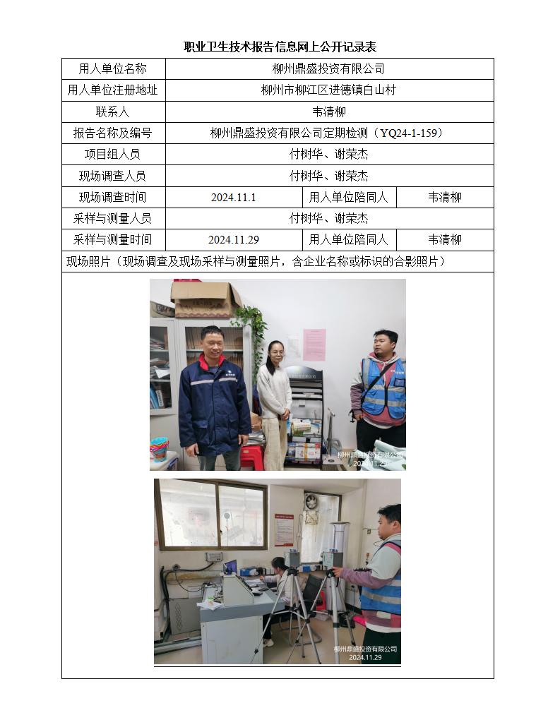 柳州鼎盛投資有限公司工作場所職業(yè)病危害因素定期檢測報(bào)告