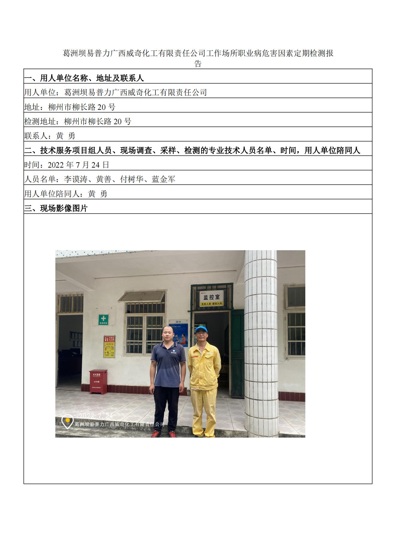 葛洲壩易普力廣西威奇化工有限責(zé)任公司工作場所職業(yè)病危害因素定期檢測報告
