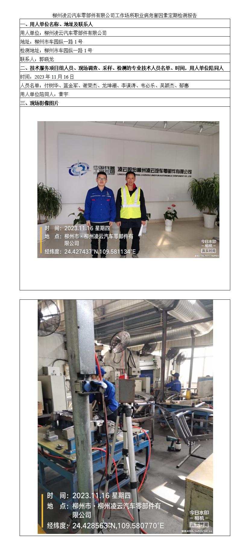 柳州凌云汽車零部件有限公司工作場(chǎng)所職業(yè)病危害因素定期檢測(cè)報(bào)告