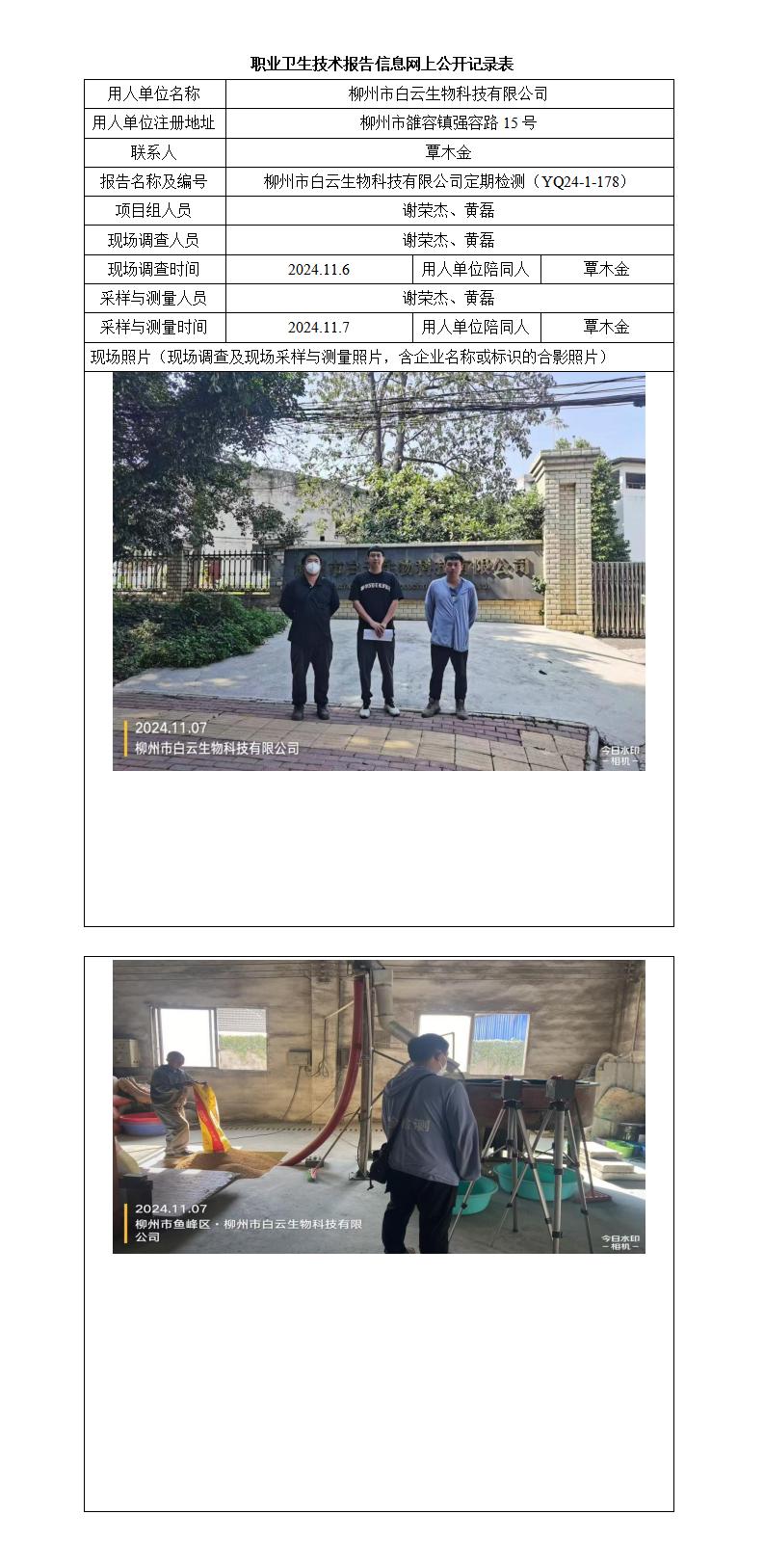 柳州市白云生物科技有限公司工作場(chǎng)所職業(yè)病危害因素定期檢測(cè)報(bào)告