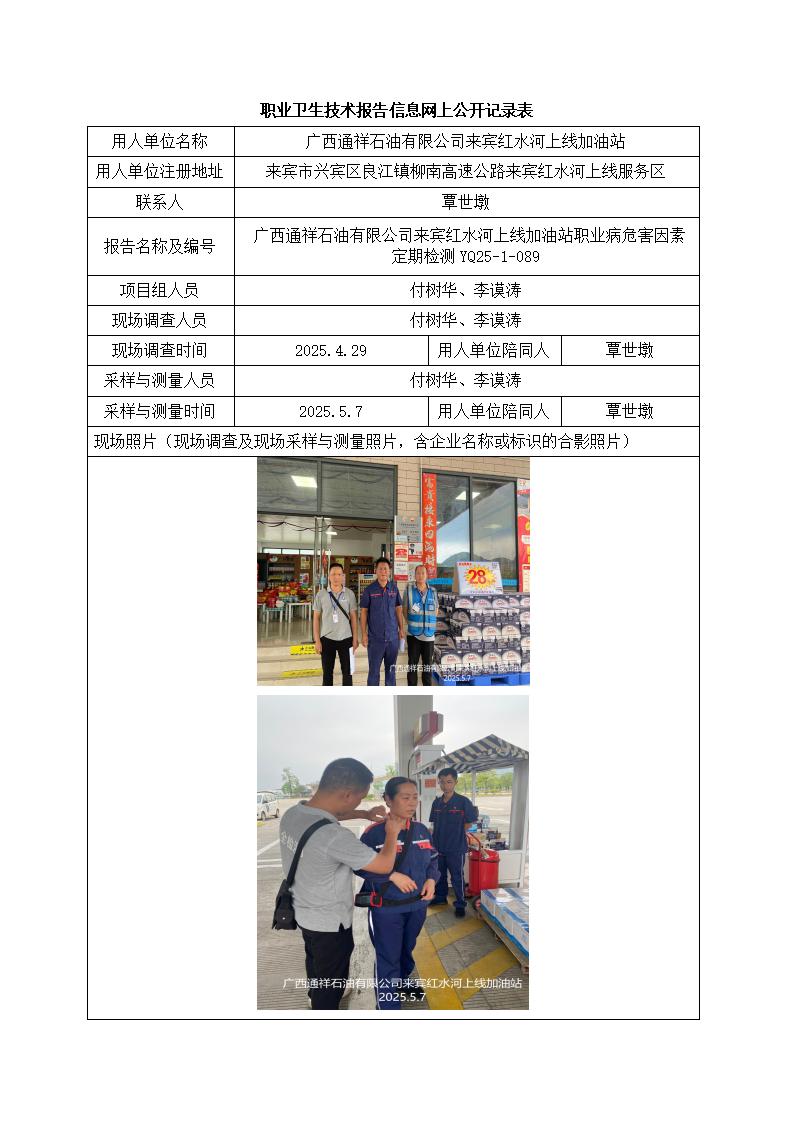 廣西通祥石油有限公司來賓紅水河上線加油站職業(yè)病危害因素定期檢測(cè)報(bào)告