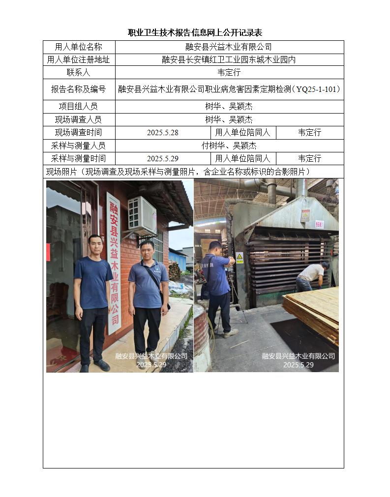 融安縣興益木業(yè)有限公司職業(yè)病危害因素定期檢測報(bào)告