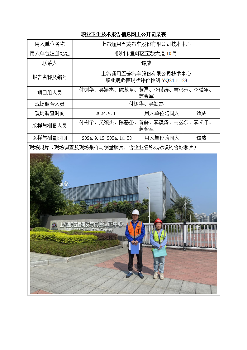 上汽通用五菱汽車股份有限公司技術(shù)中心職業(yè)病危害現(xiàn)狀評(píng)價(jià)檢測(cè)信息網(wǎng)上公開記錄表