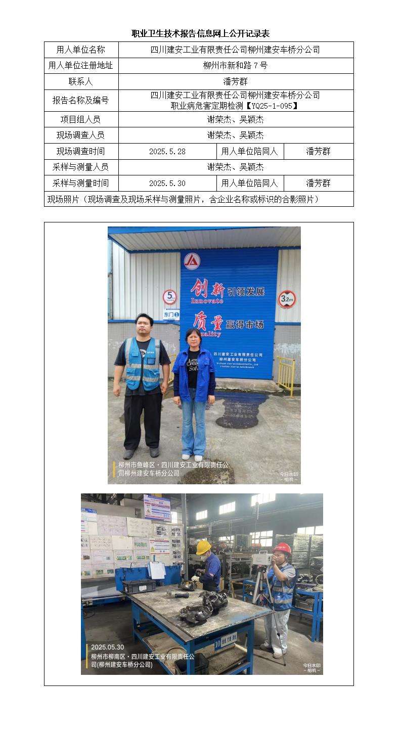 四川建安工業(yè)有限責任公司柳州建安車橋分公司 職業(yè)病危害定期檢測報告
