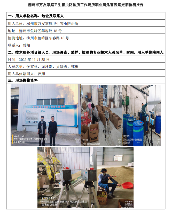 柳州市萬友家庭衛(wèi)生害蟲防治所工作場所職業(yè)病危害因素定期檢測報告