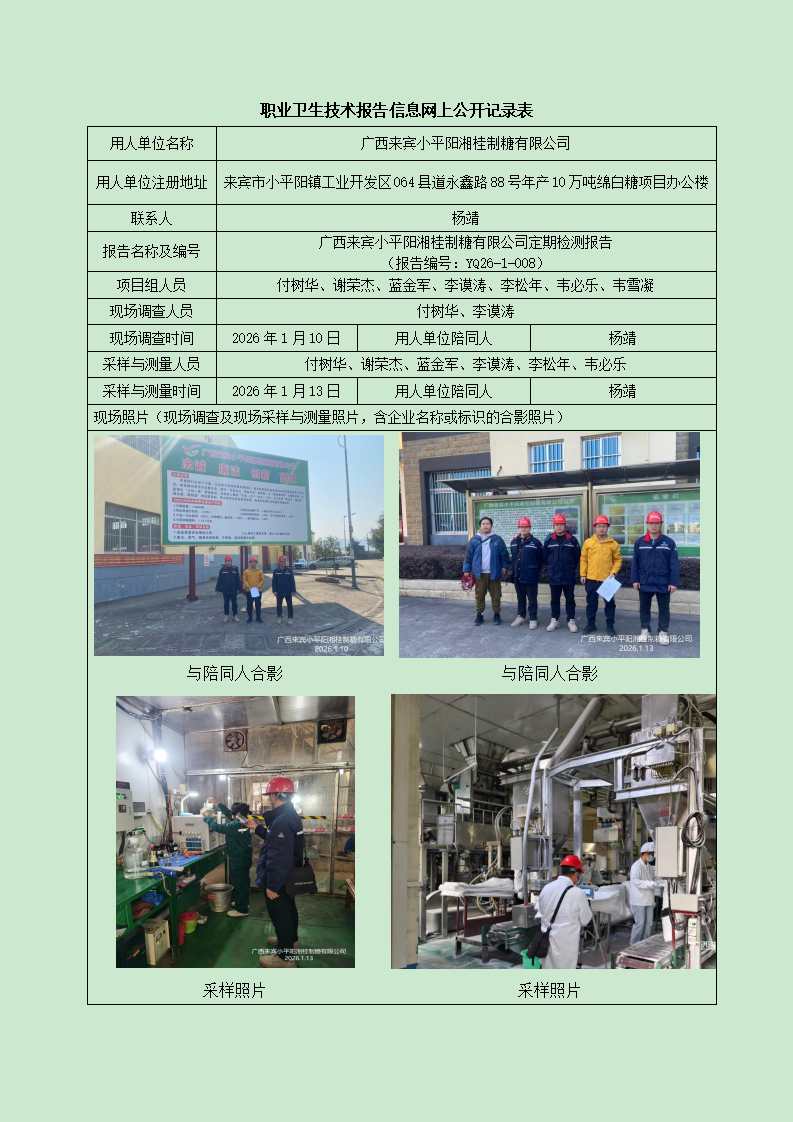 廣西來賓小平陽湘桂制糖有限公司定期檢測(cè)信息公開