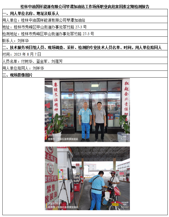 桂林中油國(guó)祥能源有限公司琴潭加油站工作場(chǎng)所職業(yè)病危害因素定期檢測(cè)報(bào)告