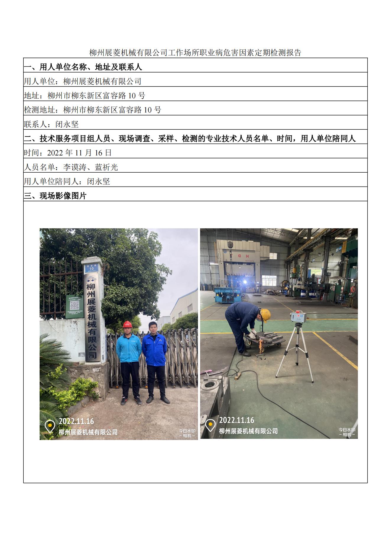 柳州展菱機械有限公司工作場所職業(yè)病危害因素定期檢測報告