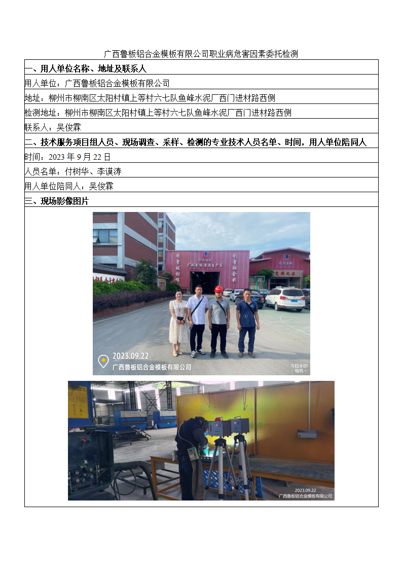 廣西魯板鋁合金模板有限公司職業(yè)病危害因素委托檢測(cè)