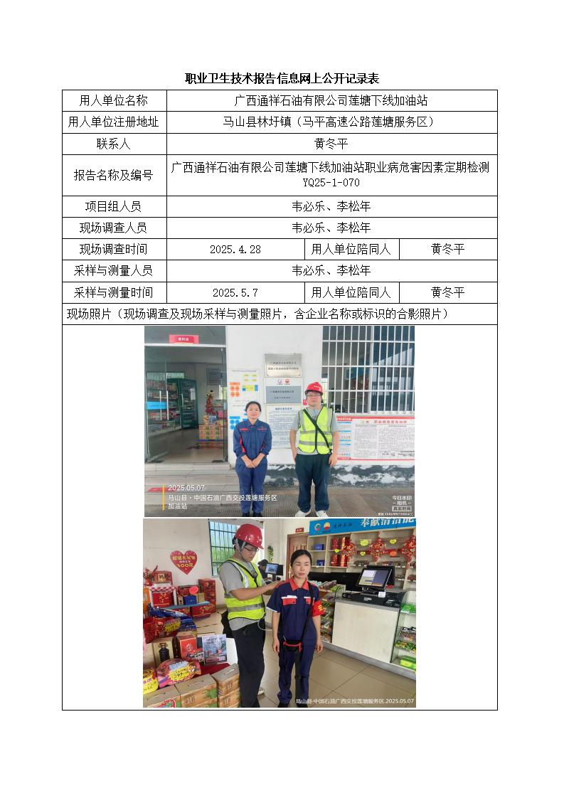 廣西通祥石油有限公司蓮塘下線加油站職業(yè)病危害因素定期檢測
