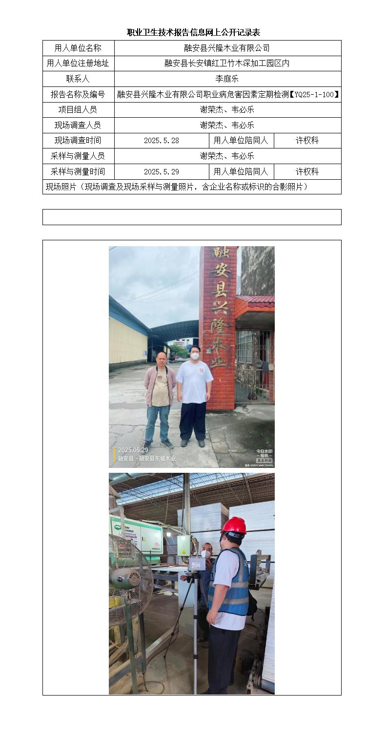 融安縣興隆木業(yè)有限公司職業(yè)病危害因素定期檢測報告