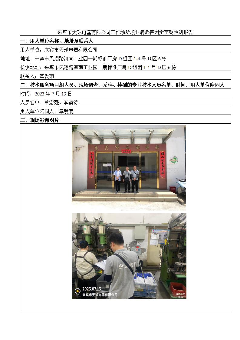 來賓市天球電器有限公司工作場所職業(yè)病危害因素定期檢測報告