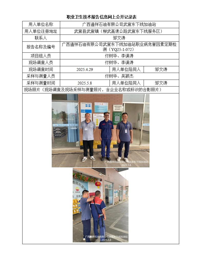 廣西通祥石油有限公司武宣東下線加油站職業(yè)病危害因素定期檢測報告