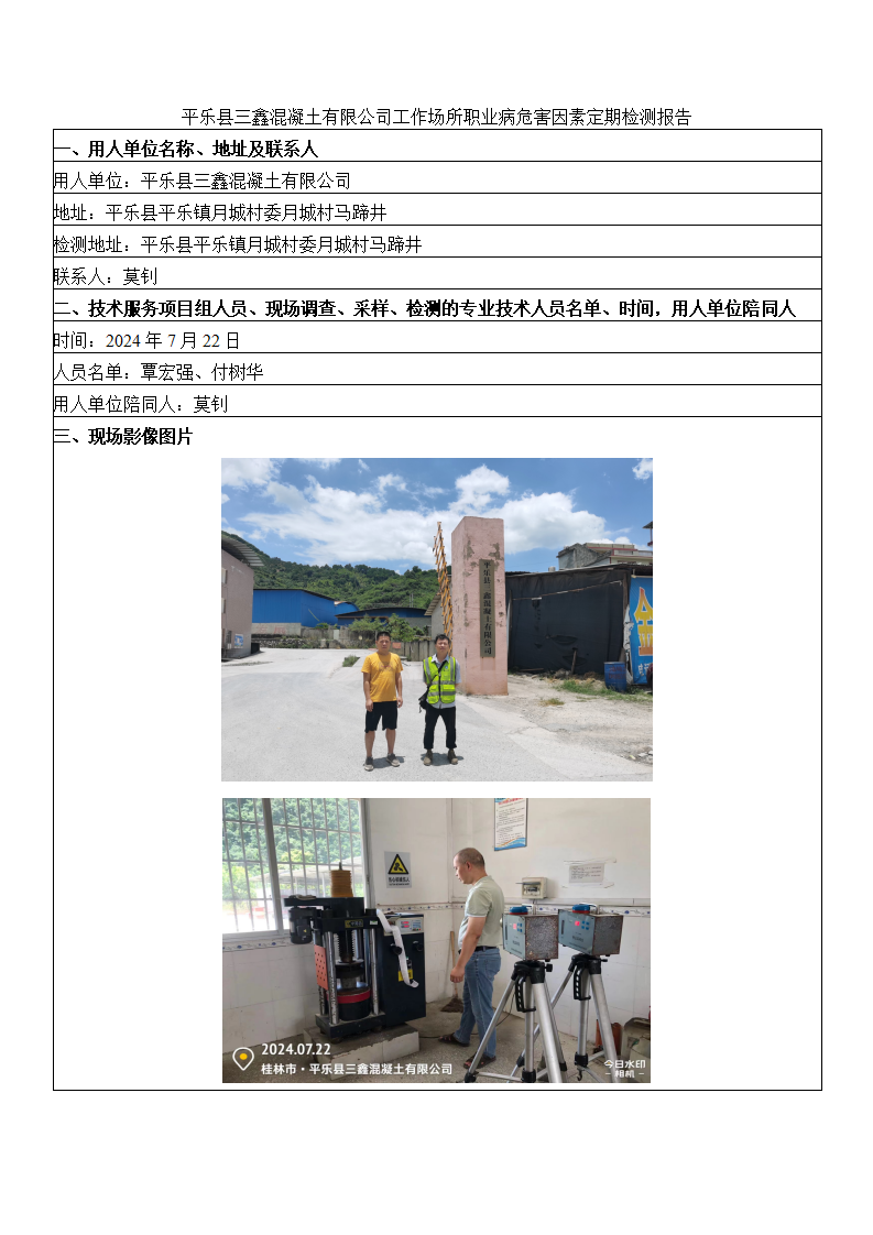 平樂縣三鑫混凝土有限公司工作場所職業(yè)病危害因素定期檢測報告