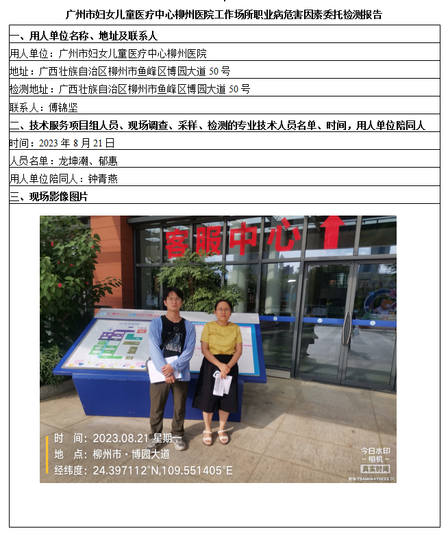 廣州市婦女兒童醫(yī)療中心柳州醫(yī)院工作場所職業(yè)病危害因素委托檢測報(bào)告