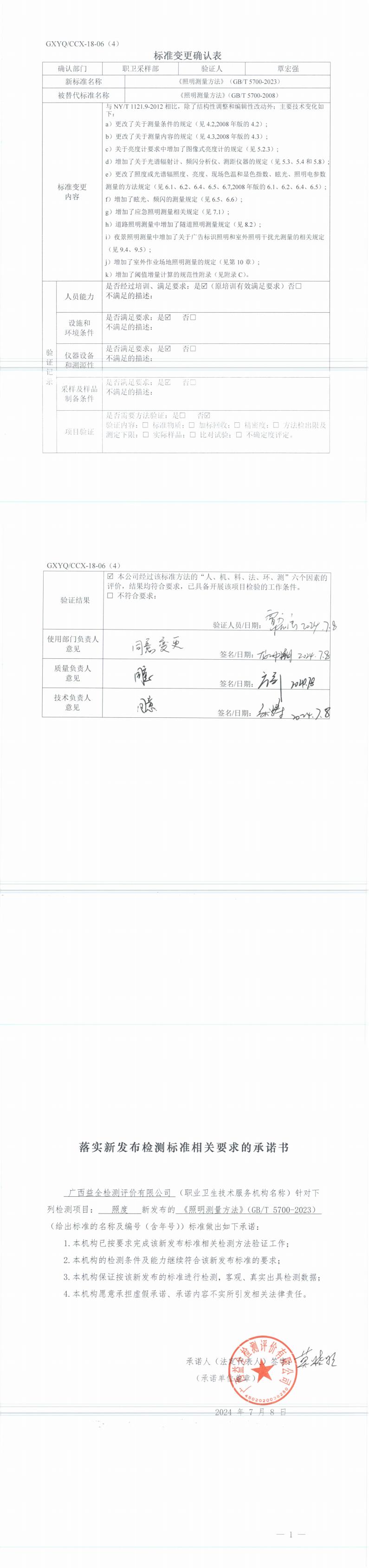 關于“廣西益全檢測評價有限公司《照明測量方法》(GBT 5700-2023)標準變更材料”的公示