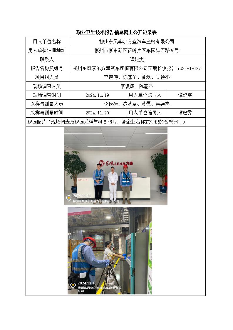 柳州東風(fēng)李爾方盛汽車座椅有限公司定期檢測
