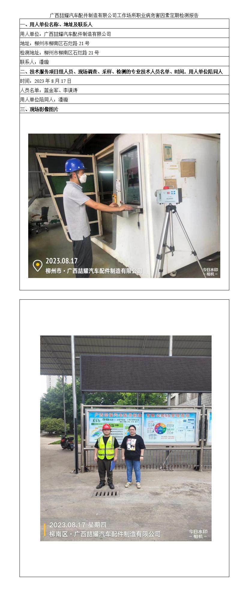 廣西喆耀汽車配件制造有限公司工作場(chǎng)所職業(yè)病危害因素定期檢測(cè)報(bào)告