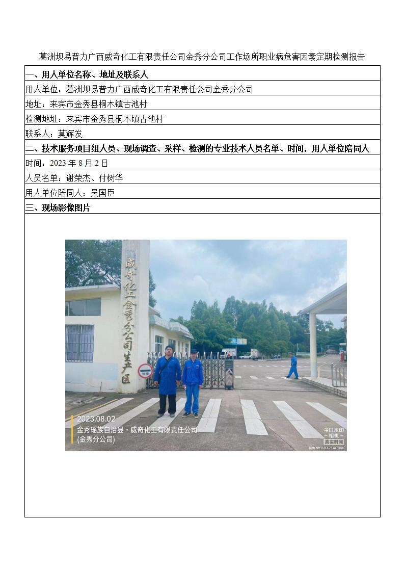 葛洲壩易普力廣西威奇化工有限責(zé)任公司金秀分公司工作場所職業(yè)病危害因素定期檢測報(bào)告