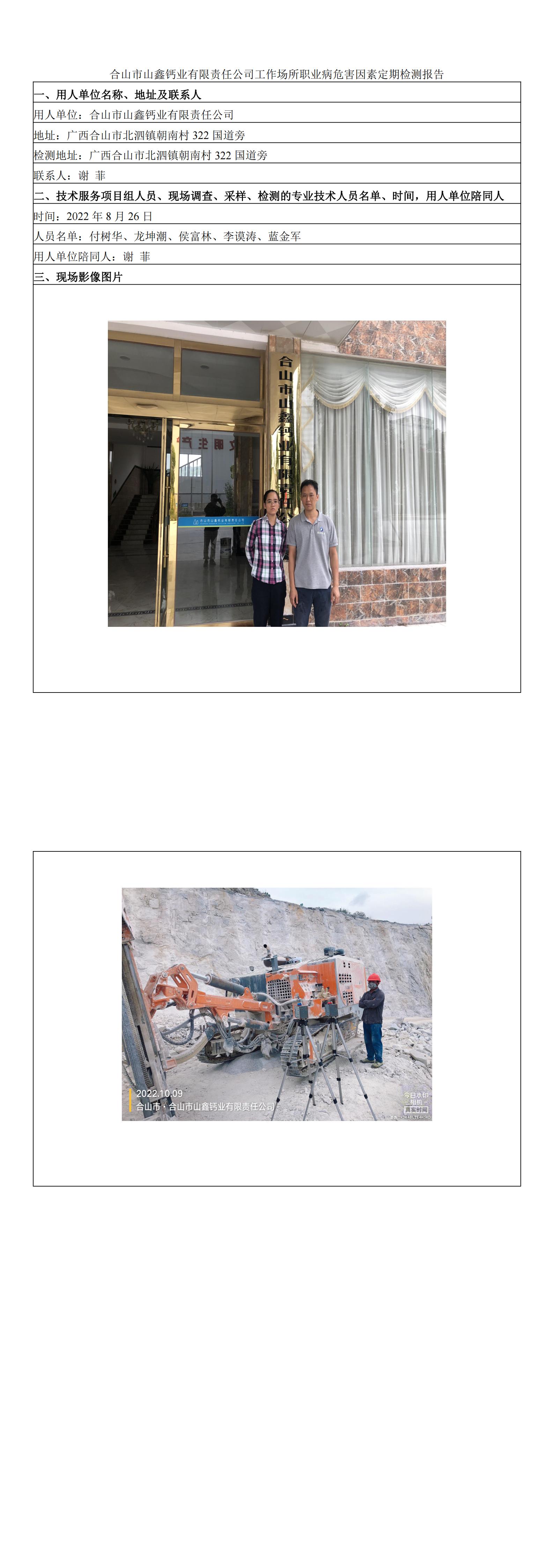 合山市山鑫鈣業(yè)有限責(zé)任公司工作場所職業(yè)病危害因素定期檢測報告