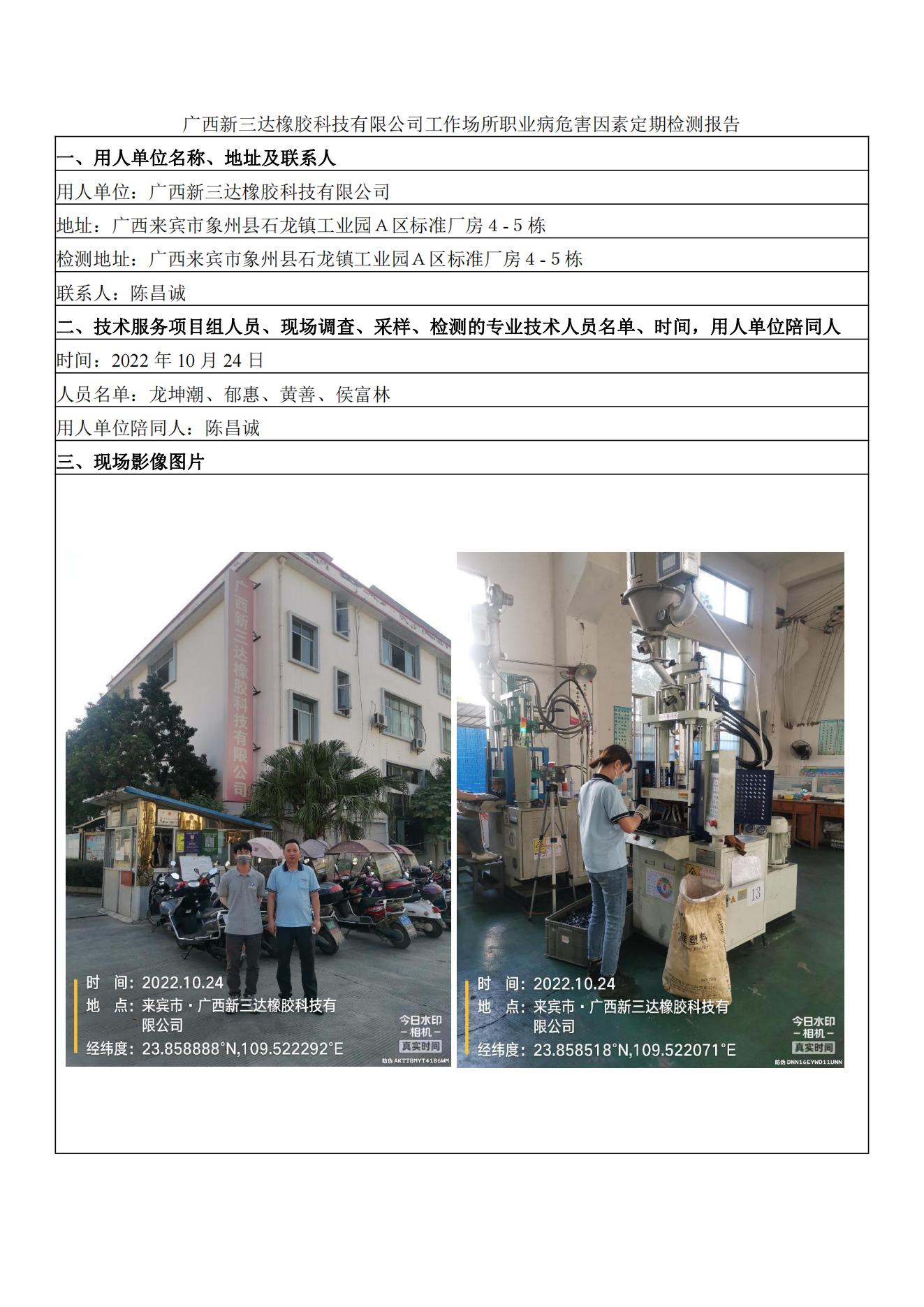 廣西新三達(dá)橡膠科技有限公司工作場所職業(yè)病危害因素定期檢測報(bào)告