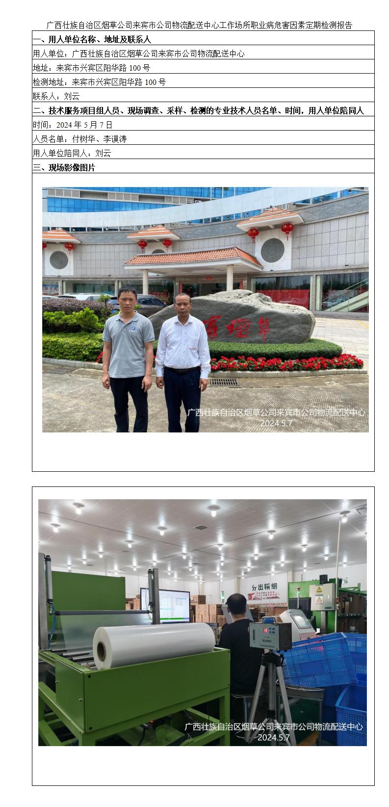 廣西壯族自治區(qū)煙草公司來賓市公司物流配送中心工作場所職業(yè)病危害因素定期檢測報告