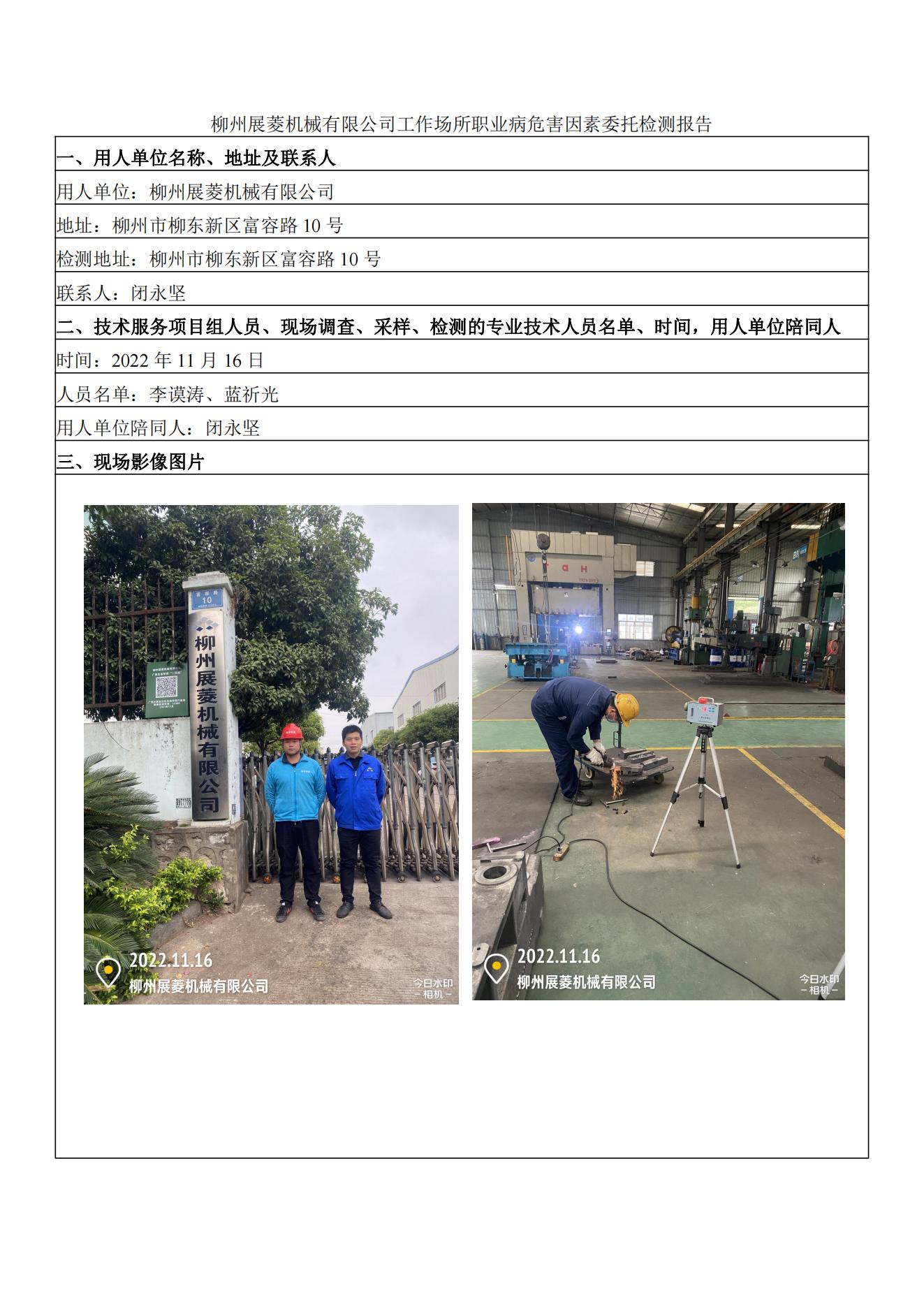 柳州展菱機(jī)械有限公司工作場(chǎng)所職業(yè)病危害因素委托檢測(cè)報(bào)告