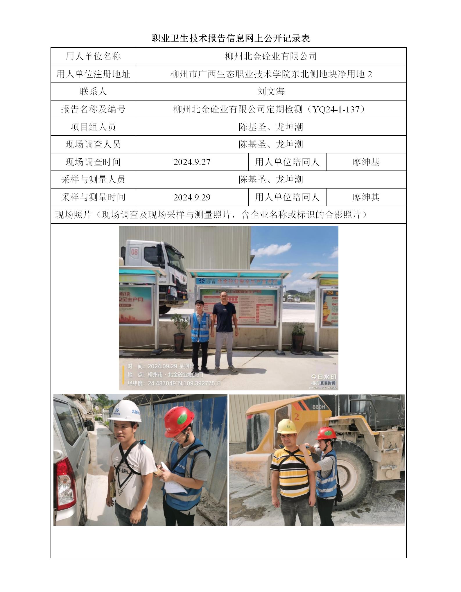 柳州北金砼業(yè)有限公司工作場所職業(yè)病危害因素定期檢測報(bào)告