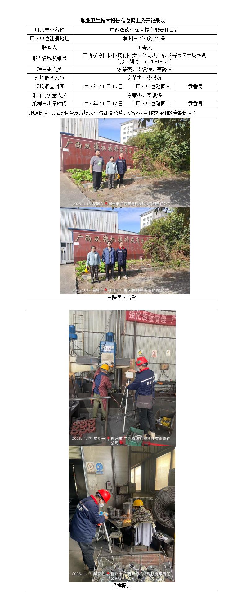 廣西雙德機(jī)械科技有限責(zé)任公司職業(yè)病危害因素定期檢測 (報(bào)告編號(hào):YQ25-1-171)