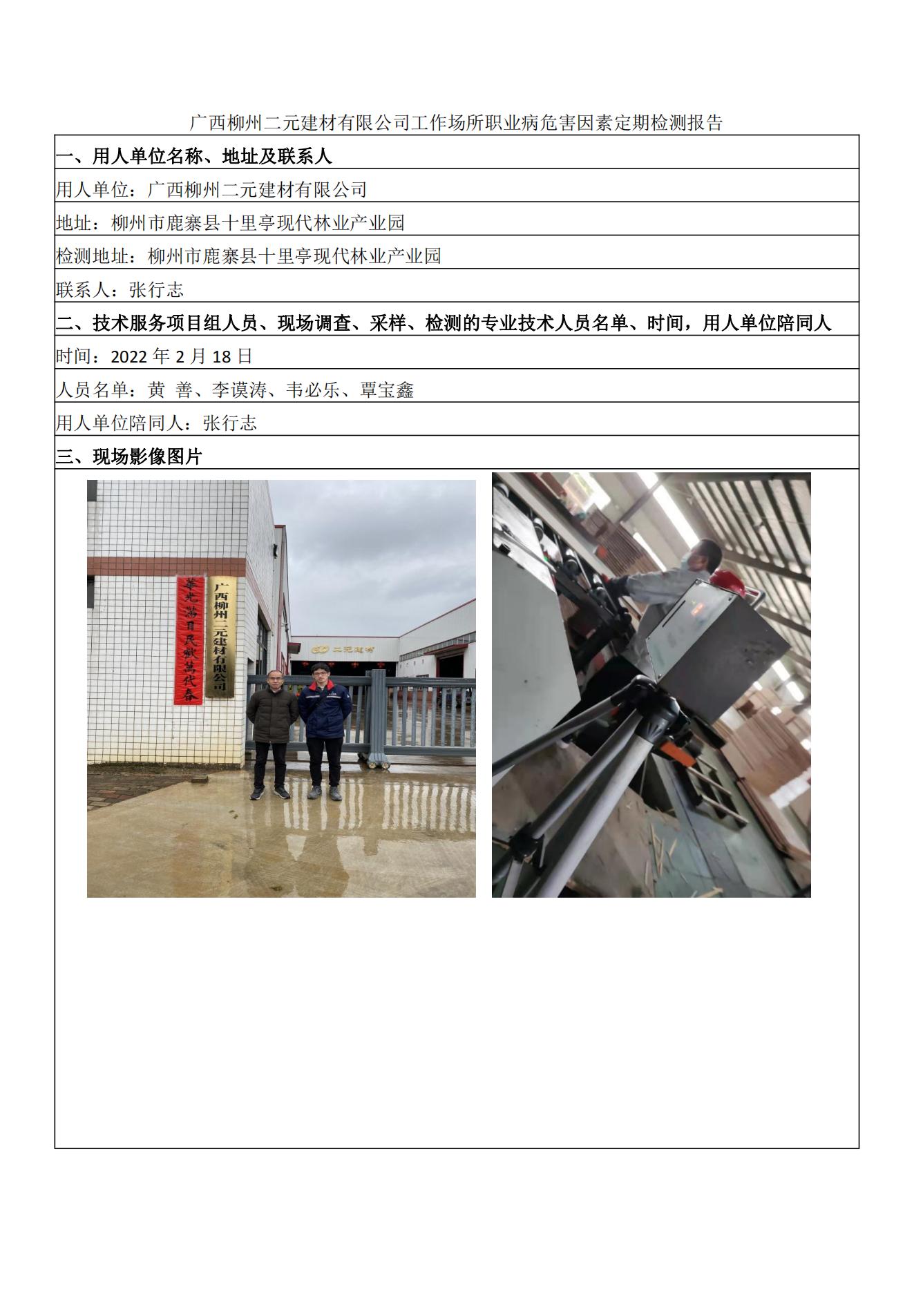 廣西柳州二元建材有限公司工作場所職業(yè)病危害因素定期檢測報告