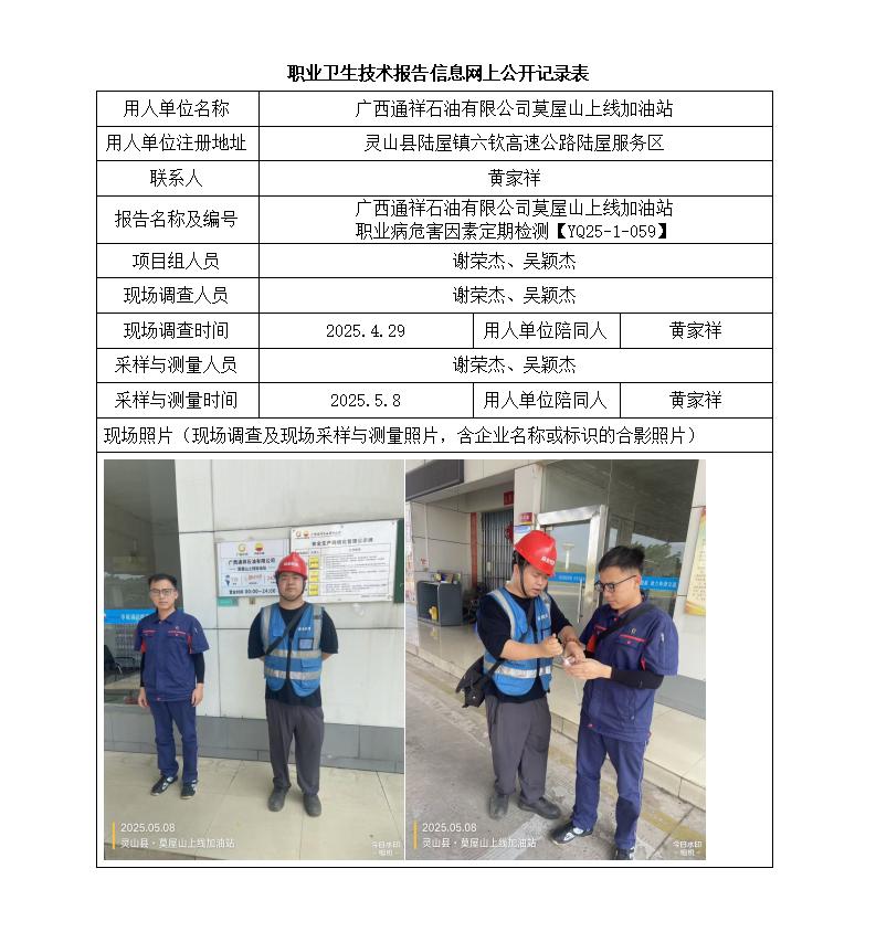 廣西通祥石油有限公司莫屋山上線加油站 職業(yè)病危害因素定期檢測報告