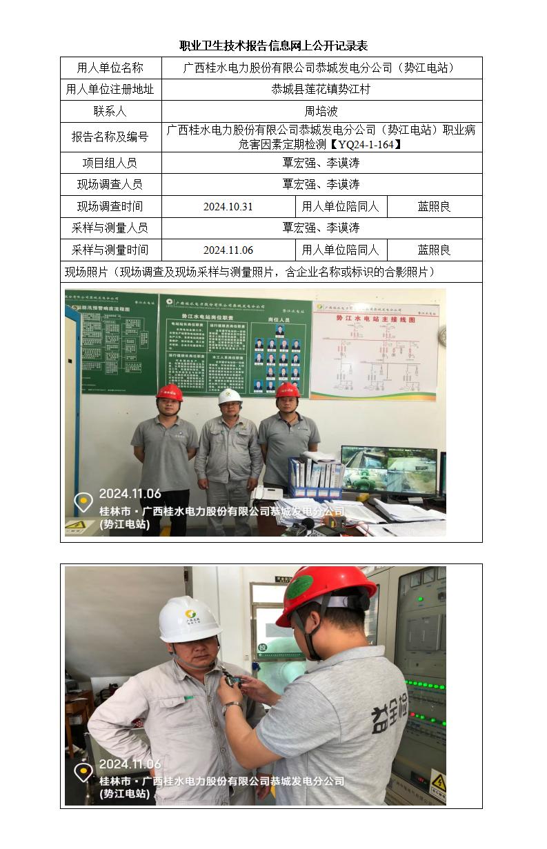 廣西桂水電力股份有限公司恭城發(fā)電分公司(勢江電站)職業(yè)病危害因素定期檢測報(bào)告