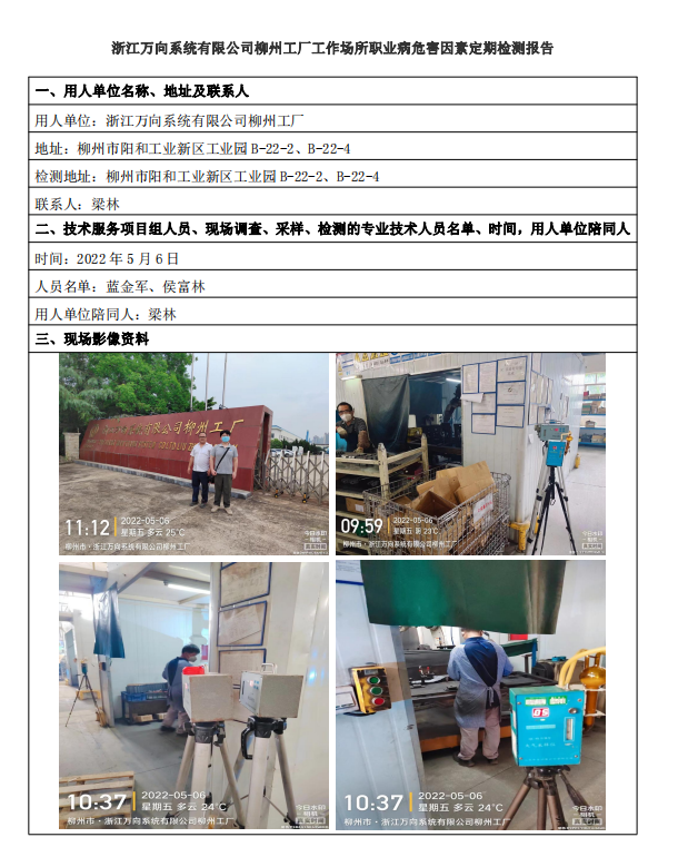 浙江萬向系統(tǒng)有限公司柳州工廠工作場所職業(yè)病危害因素定期檢測報(bào)告